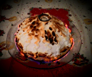 Colocar um pouco de licor na casca de ovo e acender, fica um efeito brutal e se quiserem fazer como nós coloquem também em cima do merengue e depois ponham fogo, levem para a mesa a arder, vao ver como é bonito.