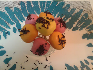 Ficaram presos e estava tudo a correr lindamente quando..... (lembram-se de ter pedido opiniões, pois várias foram com merengue) decidi que havia de bater uma clara em castelo com um pouco de açúcar e colocar em volta dos cake pops, depois com um maçarico queimar um pouco.
